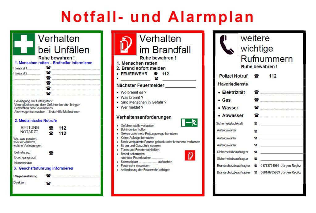 Beispiel 1: Anhang A zur Brandschutzordnung als Aushang im Gebäude Beispiel 3: Notfall- und Alarmplan zum Aushang