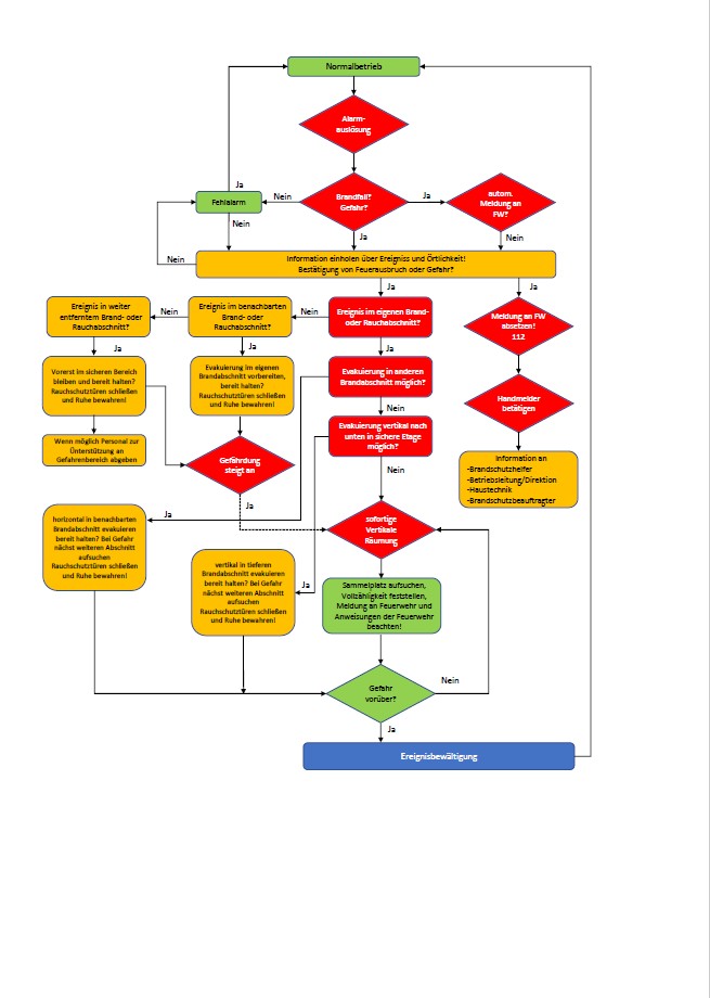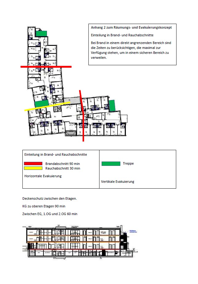 Beispiel 2: Flussdiagramm als Anhang zu einem EvakuierungskonzeptBeispiel 4: Anhang 2 zu Evakuierungskonzept Gebäudeübersicht mit Evakuierungsabschnitten